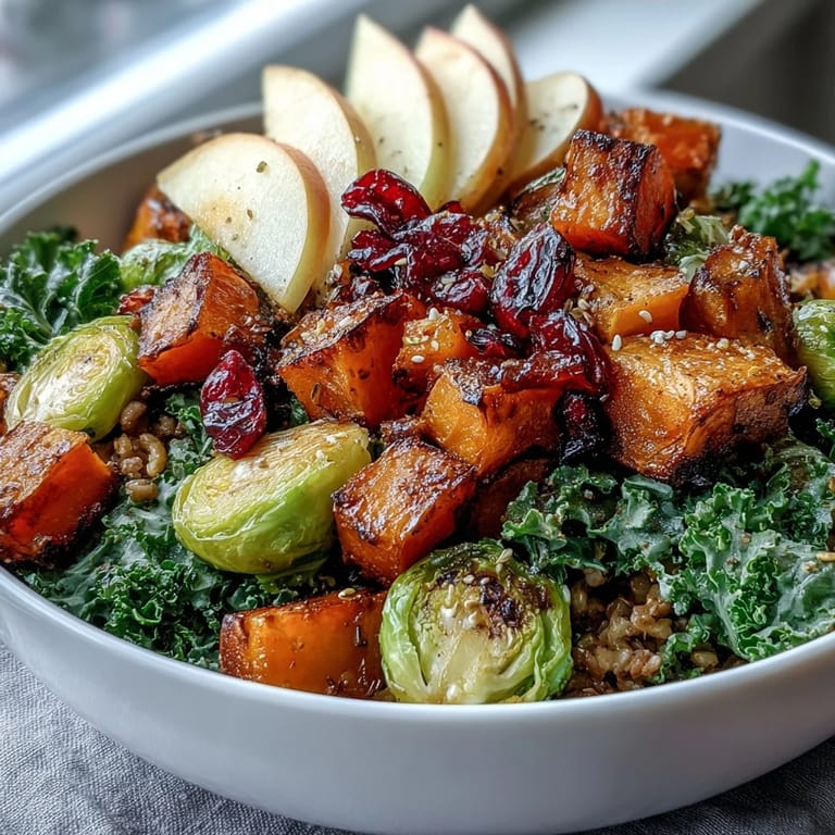 Pin it Last October, I found myself in the produce section on a crisp afternoon, overwhelmed by the season's bounty and my own wandering appetite. I grabbed butternut squash, Brussels sprouts, and a handful of other autumn treasures without a real plan, then drove home wondering what I'd actually make. That evening, as the oven warmed and the vegetables began to caramelize, I realized I was creating something that felt less like cooking and more like assembling the best parts of fall into a single bowl. My kitchen smelled like toasted grain and cinnamon, and suddenly everyone wanted to know what I was making.