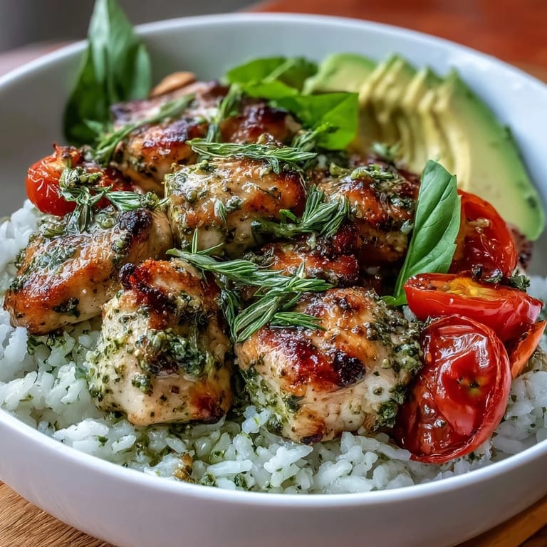 Pin it There's something about the smell of basil hitting a hot skillet that makes you stop whatever you're doing. I was rushing through a weeknight, the kind where you're tired before dinner even happens, when I tossed pesto-coated chicken into a pan almost by accident. Within minutes, the kitchen filled with this herbaceous warmth that felt like someone had just handed me permission to slow down. That bowl—rice, vegetables, chicken still glistening with green—became the thing I craved on days when I needed something that tasted like care but didn't demand hours of my time.