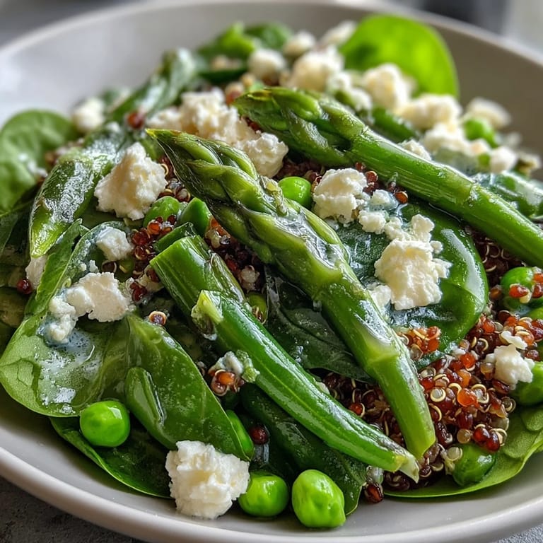 Pin it Last spring, I found myself standing in the farmers market with a basket overflowing with the first tender vegetables of the season, and I realized I had no real plan. The peas were impossibly bright, the asparagus still had that slight curve of something just picked, and I grabbed a bunch of spinach because it felt right. That afternoon, I threw together this bowl almost by accident, layering everything over some quinoa I had leftover, and it tasted like the exact moment when winter finally lets go. My partner came home to the kitchen smelling of lemon and fresh greens, and we ate straight from the bowl without even sitting down.